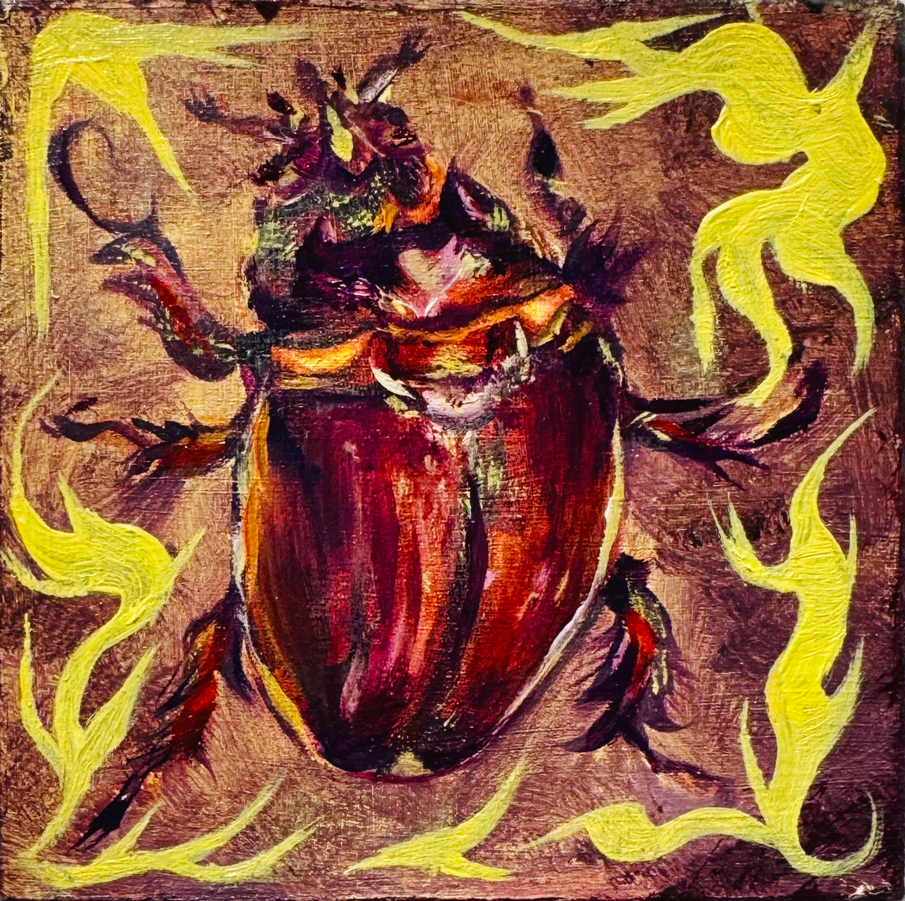 Ox Beetle, 2025, 3 x 3 in, oil on panel